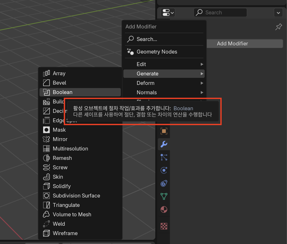 블렌더의 거의 모든 기능과 옵션에는 툴팁이 제공됩니다. 마우스를 옵션 위에 올려놓으면 네모 박스에 해당 옵션에 대한 간단한 설명이 나타납니다.