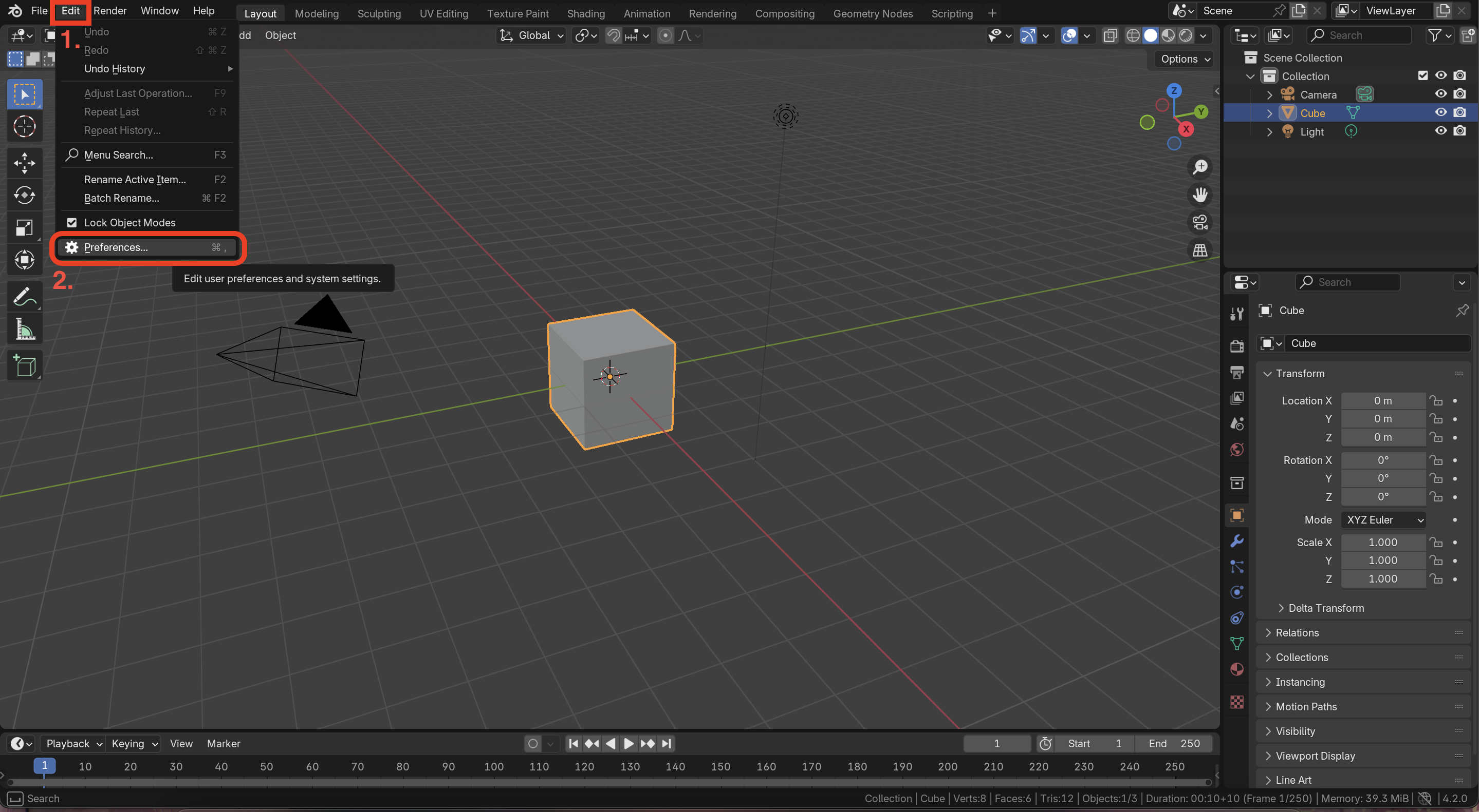 1. 좌상단 edit 메뉴 > Preferences 선택하여 환경 설정 진입